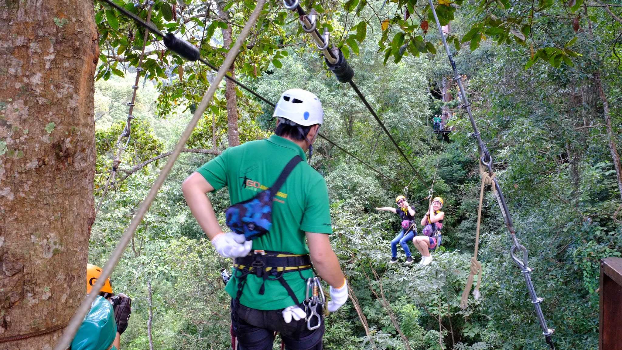 说起玩乐项目,那么就是jungle flight了。事先在途牛网订好票,包来回接送,来往丛林花费了两个多小时,整个飞跃过程大约两小时。为了在玩的过程中拍几张照片牺牲了一个镜头盖,而且在冲击过程中,相机被撞击了几次,好在现在依旧能使用。