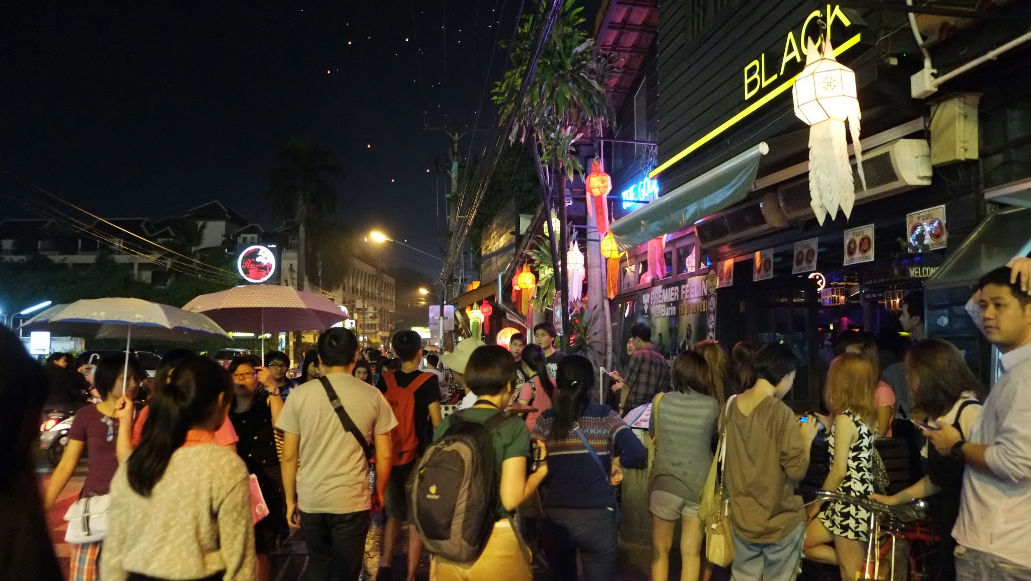 到达的当天是水灯节正日,下着小雨,我们放下行李便开始朝塔佩门行进,迫不及待目睹水灯节。